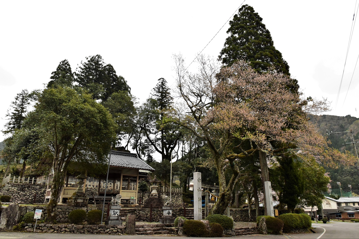 K86に少し入って、下呂市金山町東沓部の白山神社に立つ左近樹の桜です。