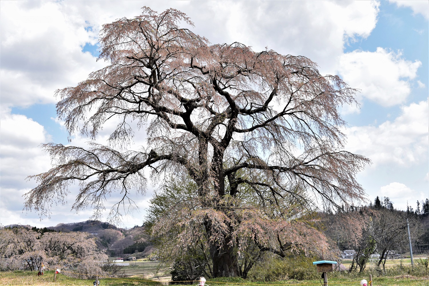 推定樹齢約220年の変種のウバヒガンザクラの枝垂桜ですが、すでに遅かったです。