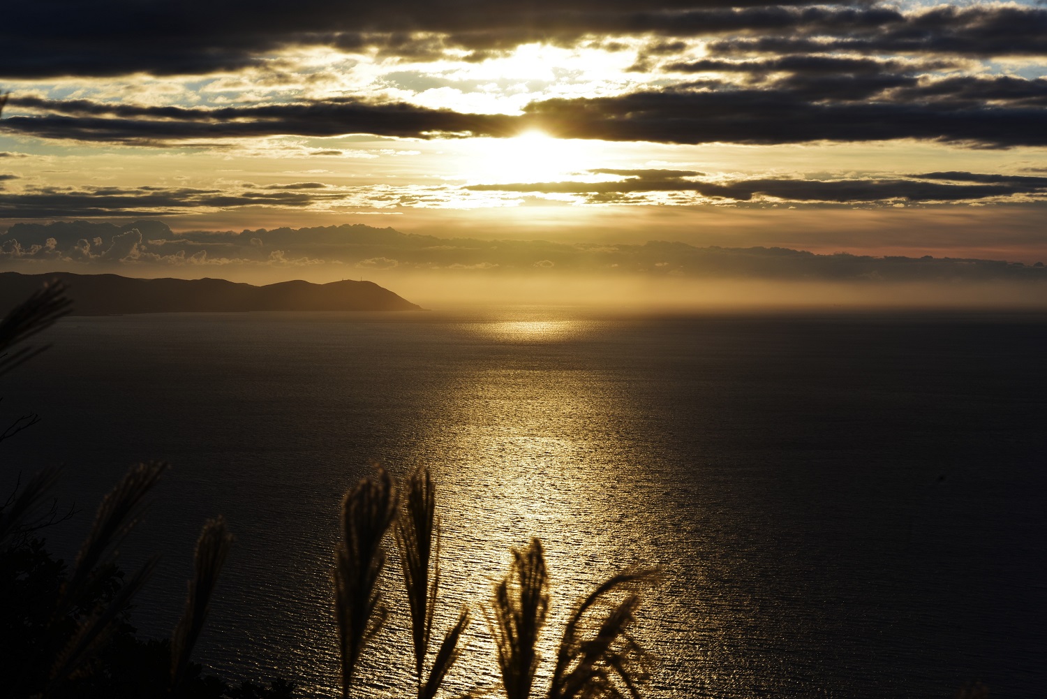 明るくなるにつれ、徐々に消えてゆく街灯り、そして日の出は町より少し右側、汐首岬の先に上がるようです。