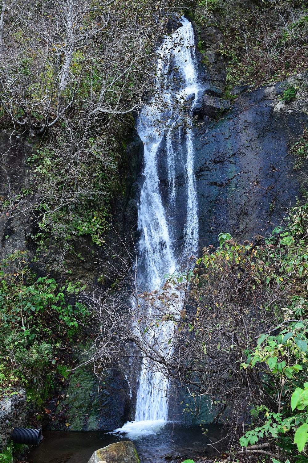 20mの高さから一筋にまっすぐに落ちる見事な直瀑なので、水量があった時もう一度見たいものです。