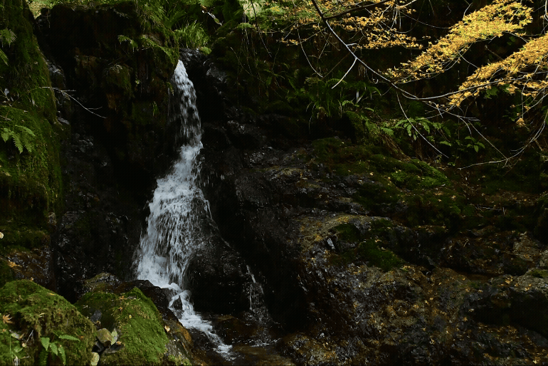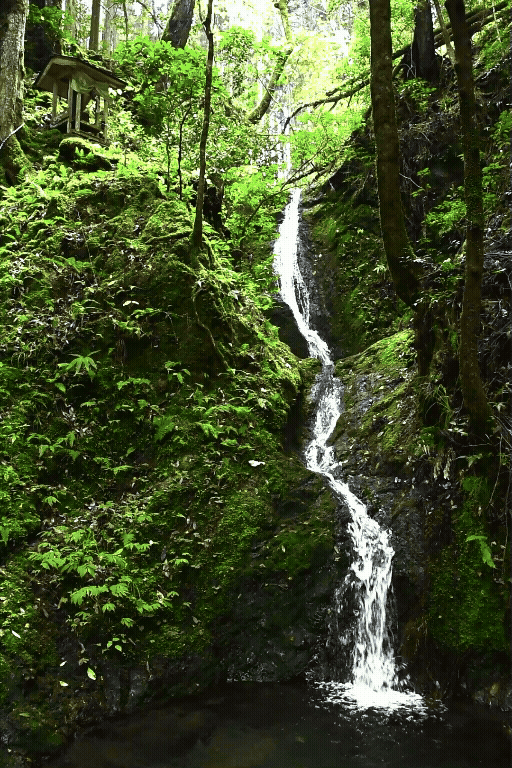上乙見(かみおとみ)不動の滝 7m斜瀑、信仰の滝