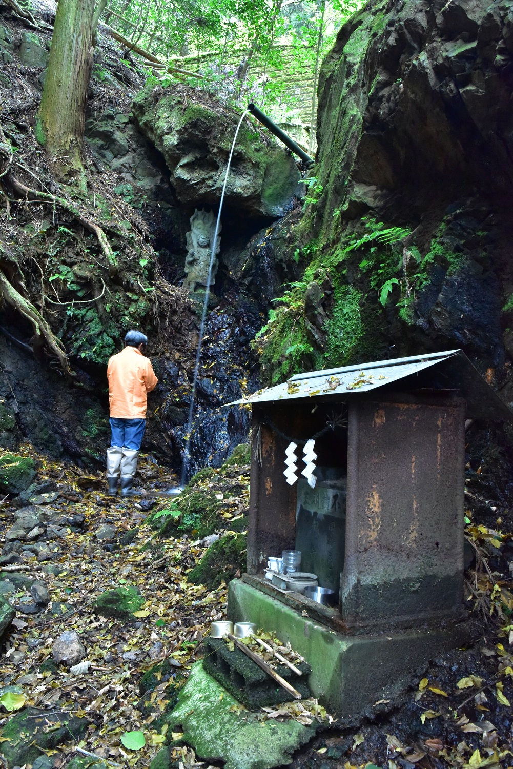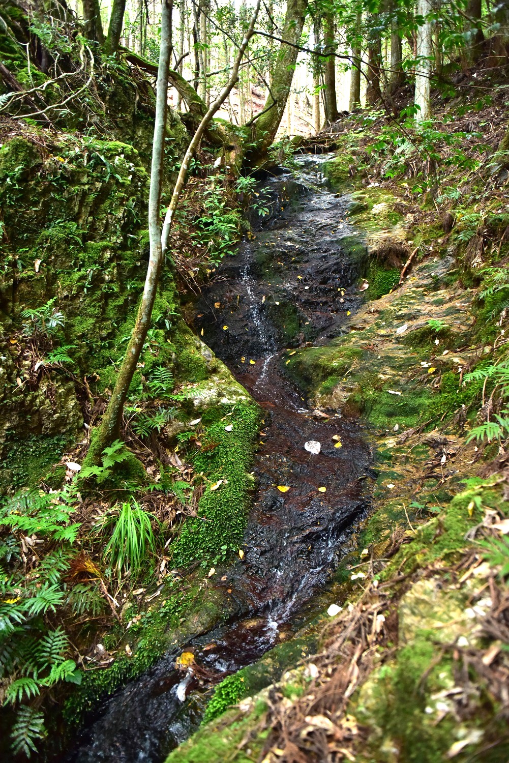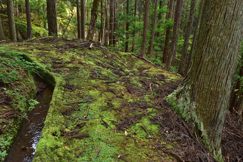 沢もない所なので調べたら、沢の上流から水路で導水していました。