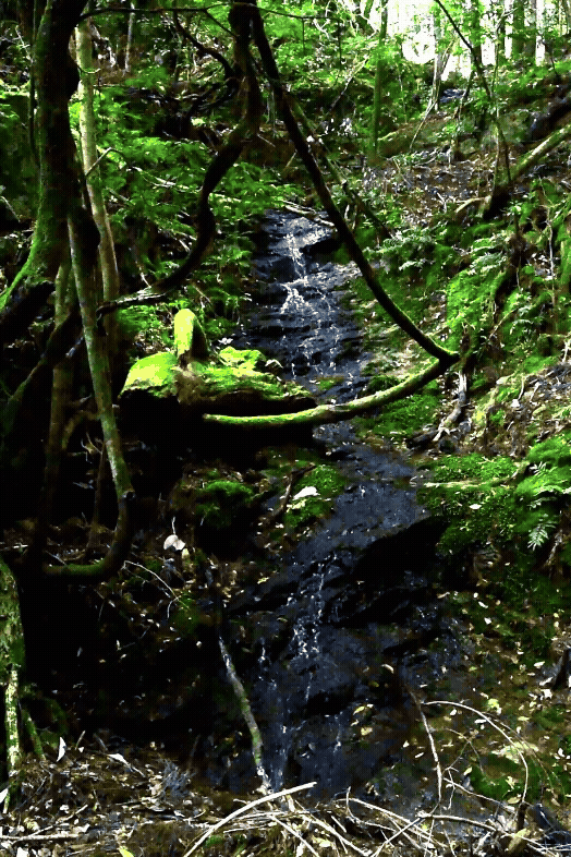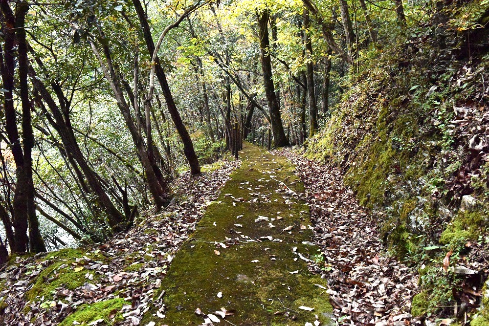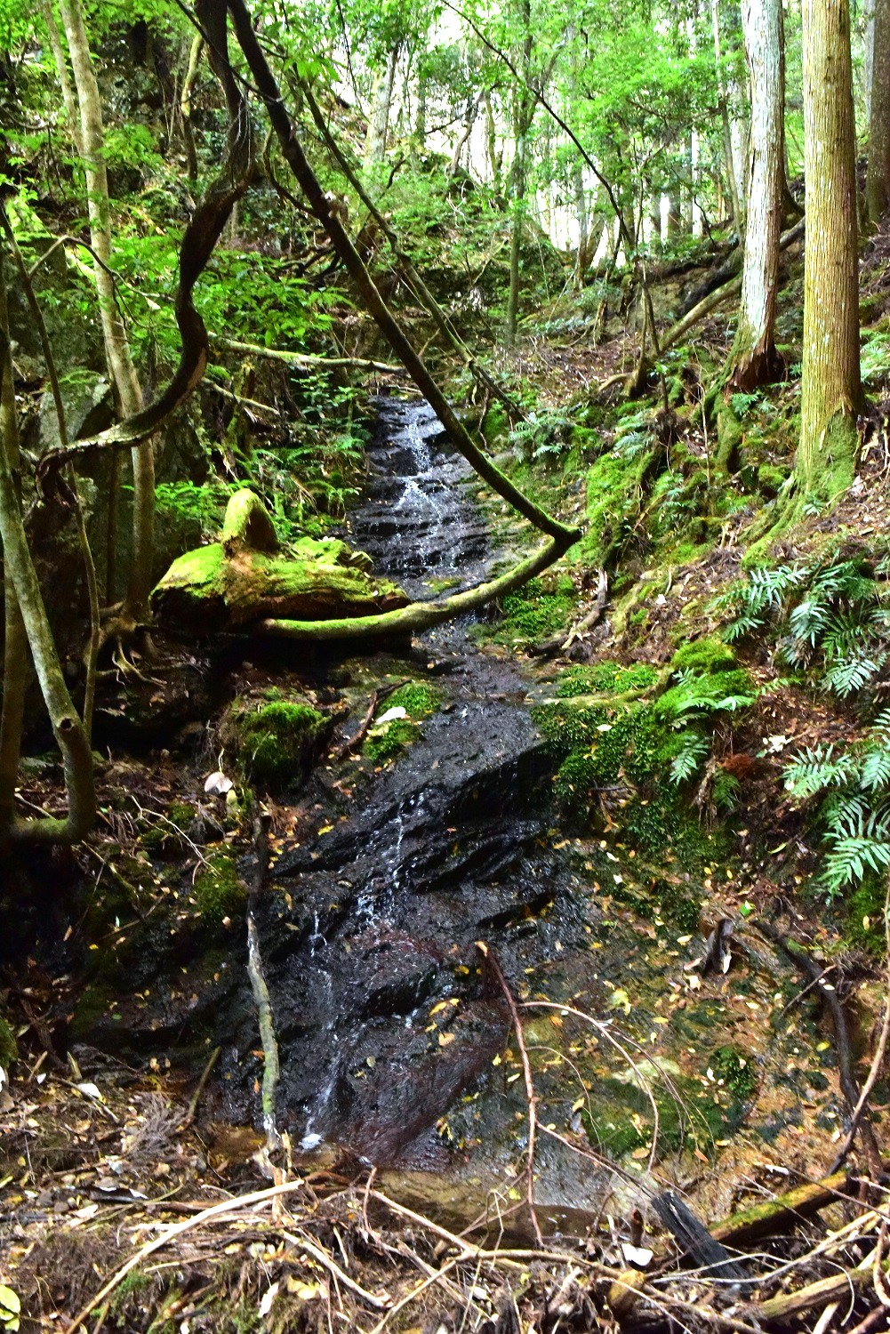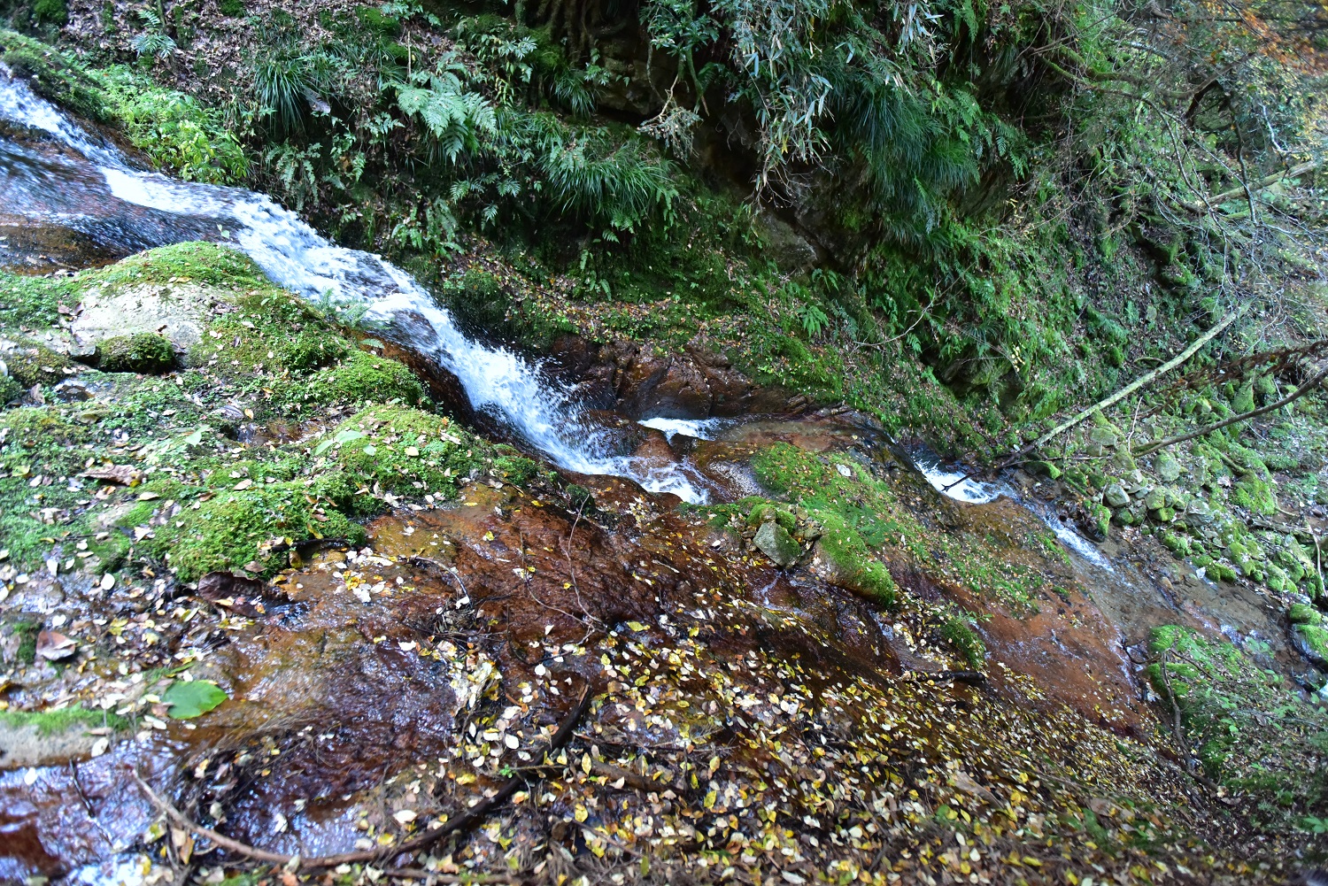 沢もない所なので調べたら、沢の上流から水路で導水していました。