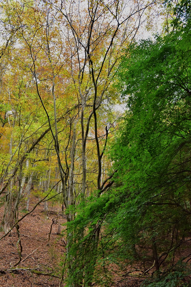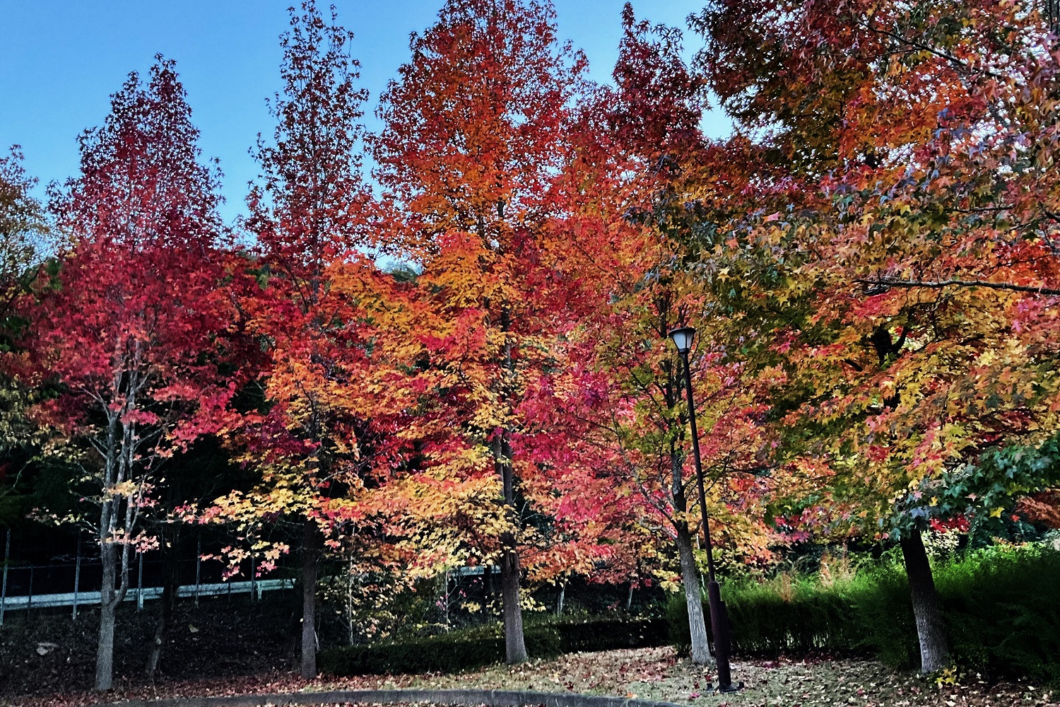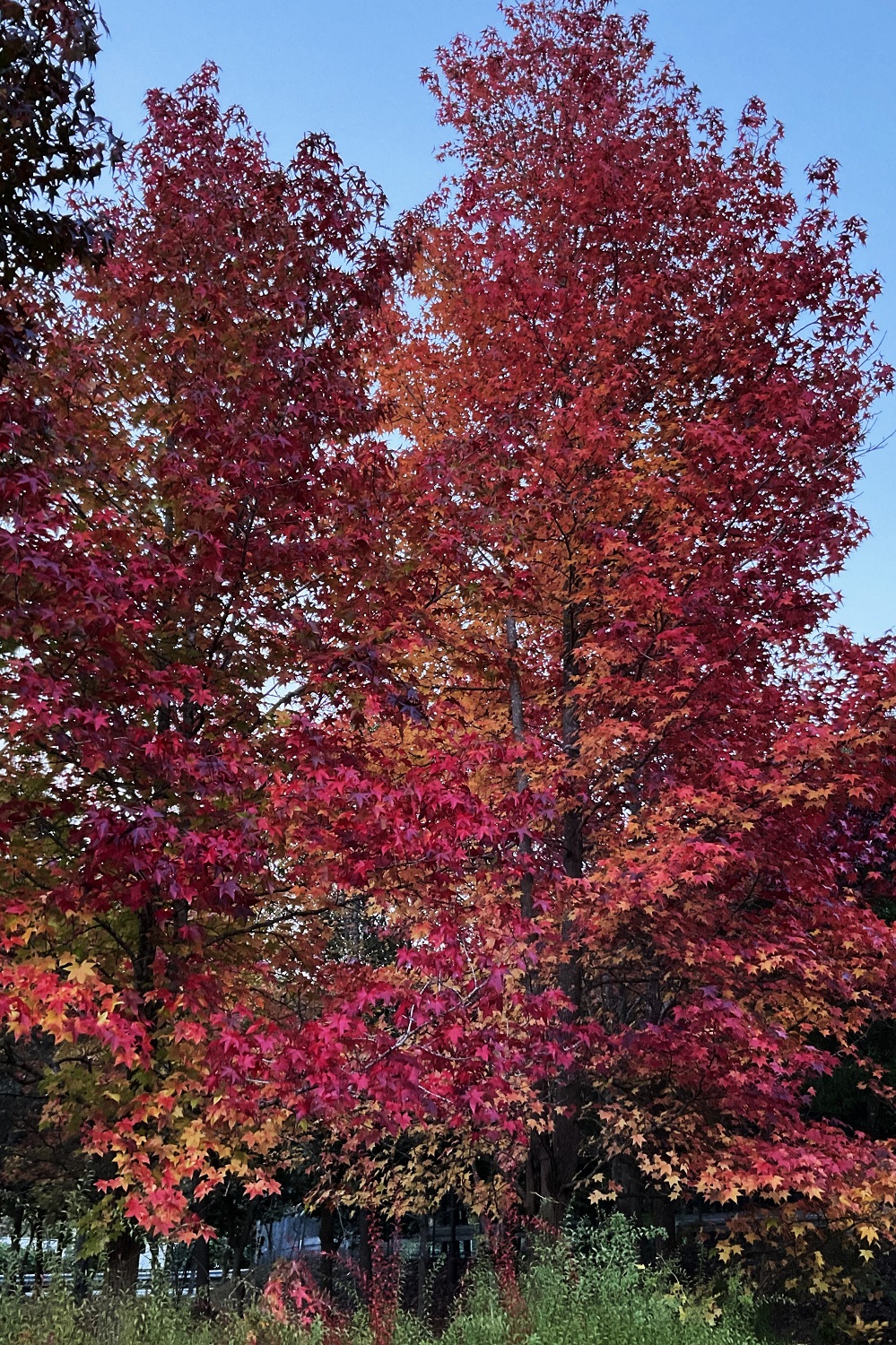 自然の広葉樹林はしっかり紅葉しているのにね。