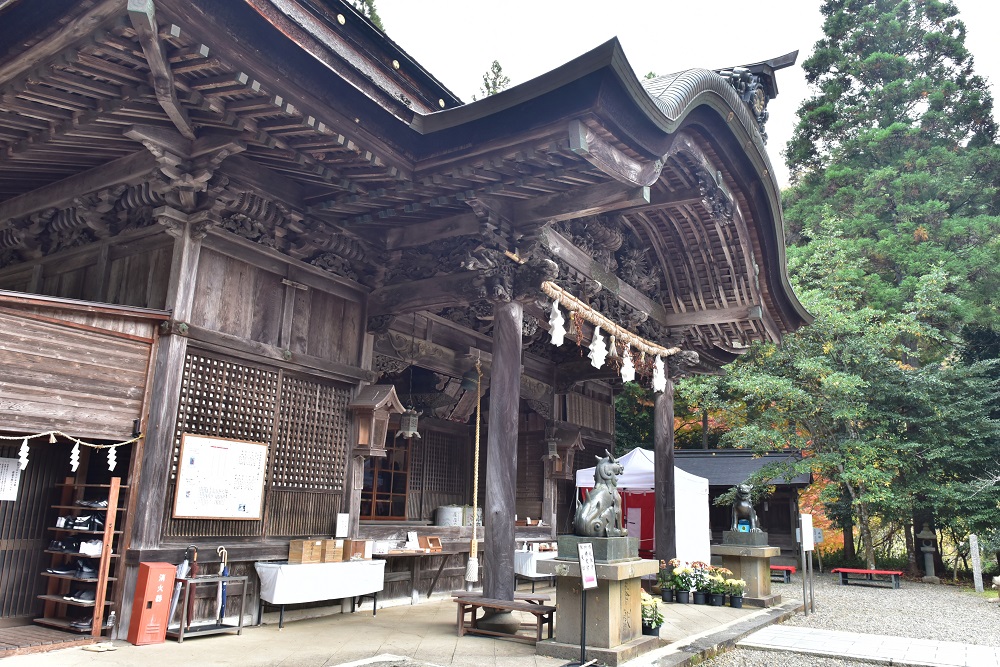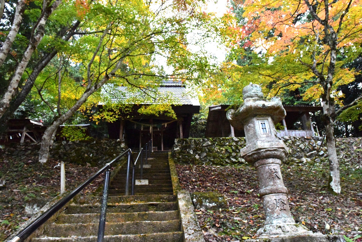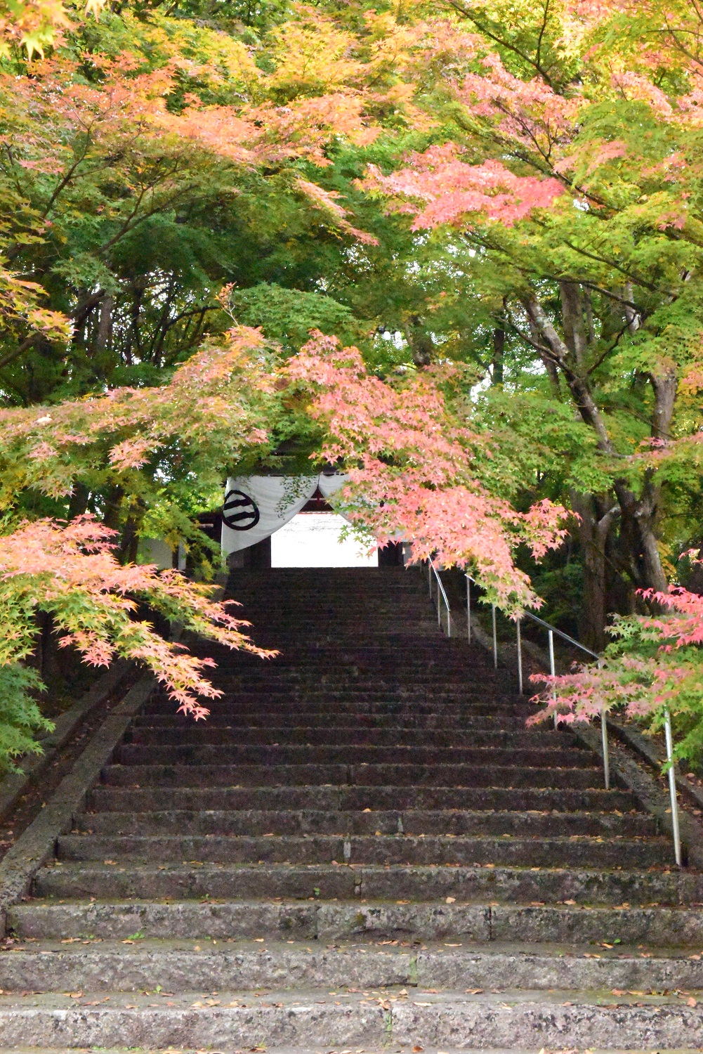 参道の石段が落葉で赤く染まるのはもう少し先です。