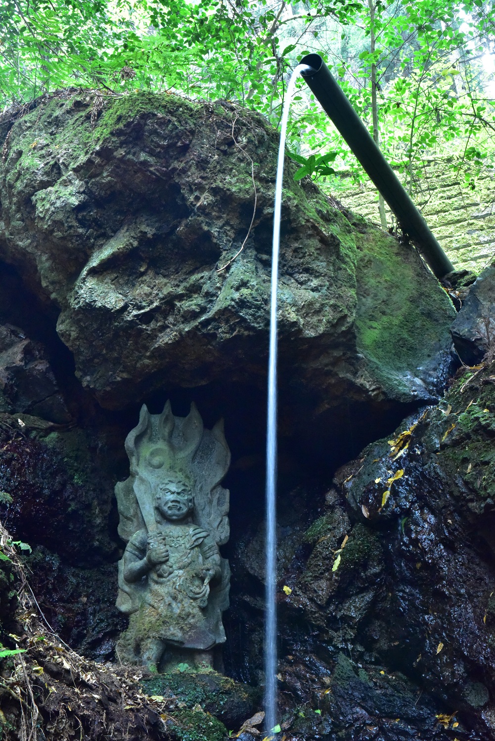 水が多い時は後ろの岩からも落ちるようですが、今日は樋からだけでした。