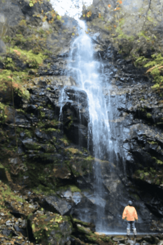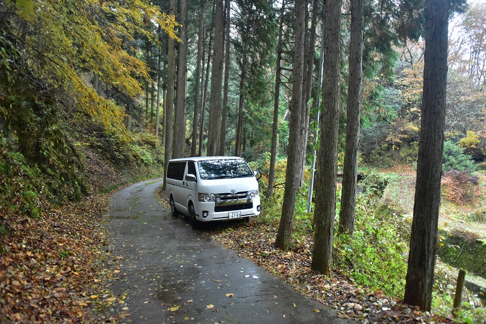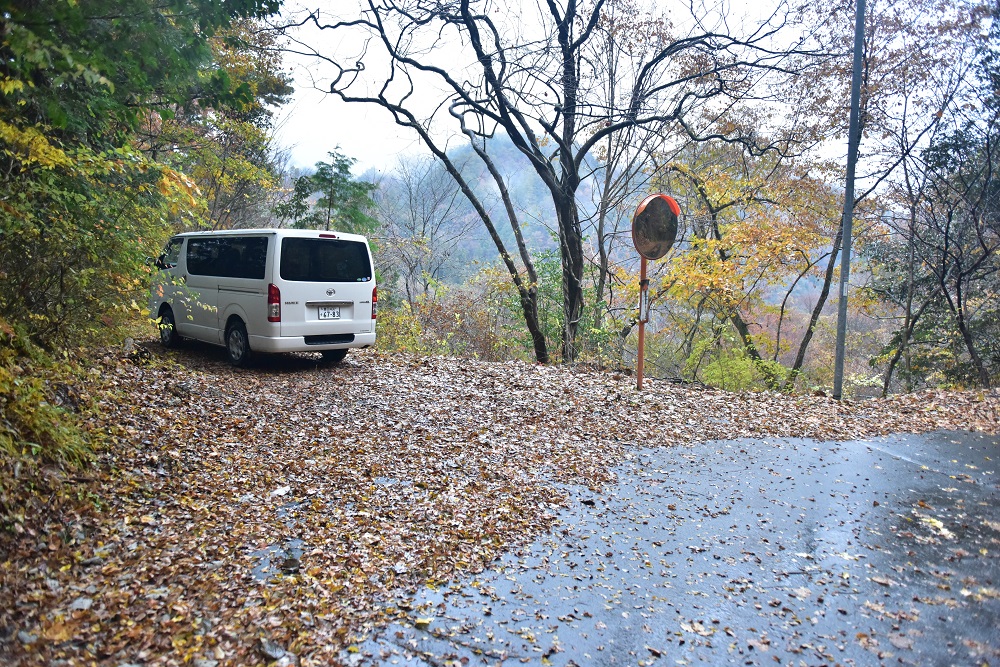 滝入口を越して30mぐらい先に駐車スペースがありましましたが、離合スペースでもあるので奥に詰めて駐車しました。