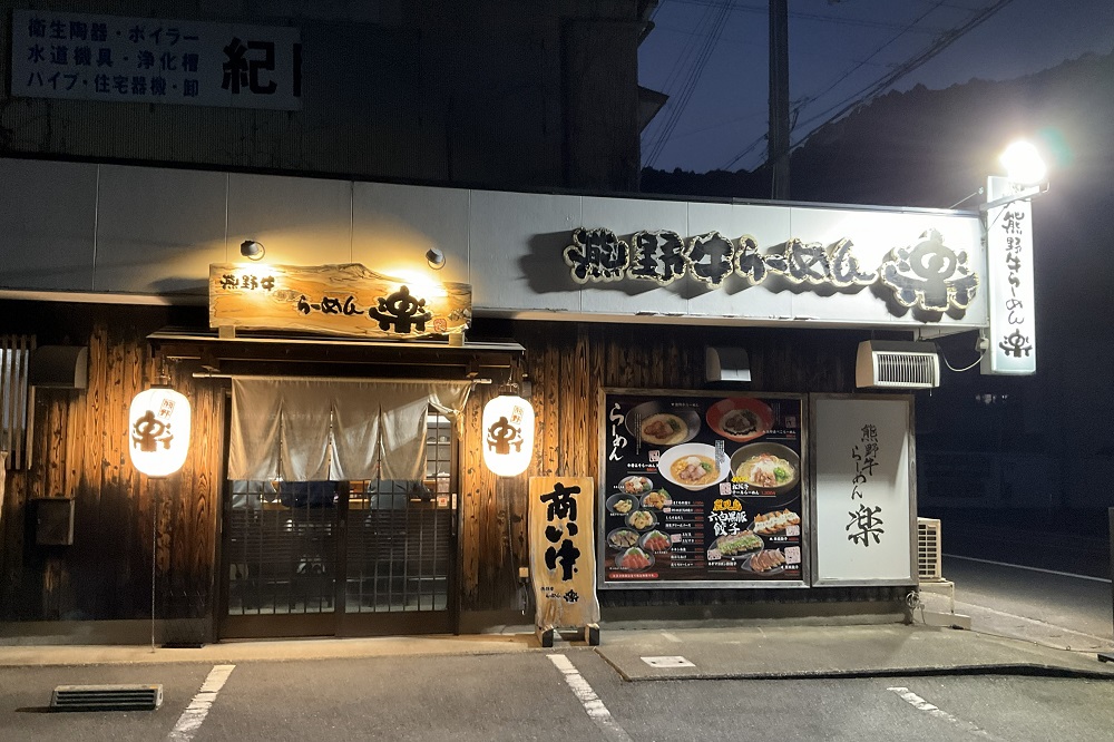 道の駅近くに食事処は全くなかったので、新宮まで戻って夕食は、熊野牛らーめん 楽さんです。