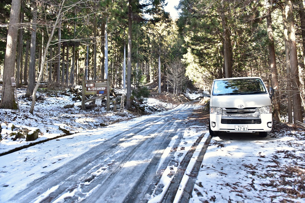 滝入口までの道はところどころで積雪、アイスバーンとなっていてスタッドレスでも怖かったです。