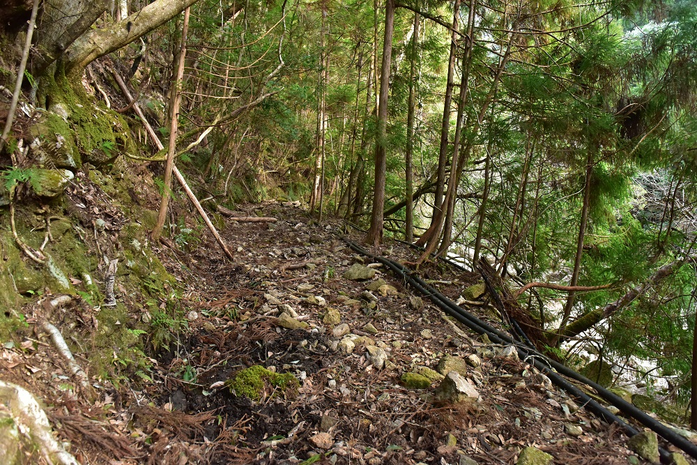 林道から沢に沿って最初は廃林道風な道を進みます。