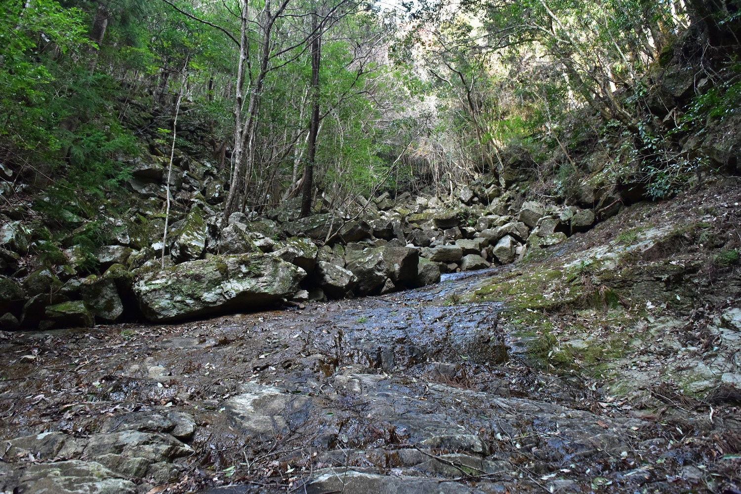 最初の左からの沢に進みますが、けっこう急な滑床の沢でした。