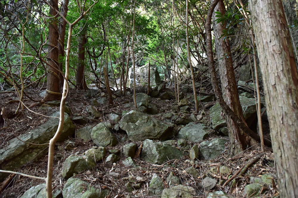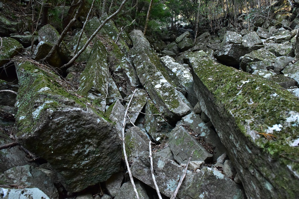 ここから上は、柱状節理の巨石やらのゴーロ帯です。