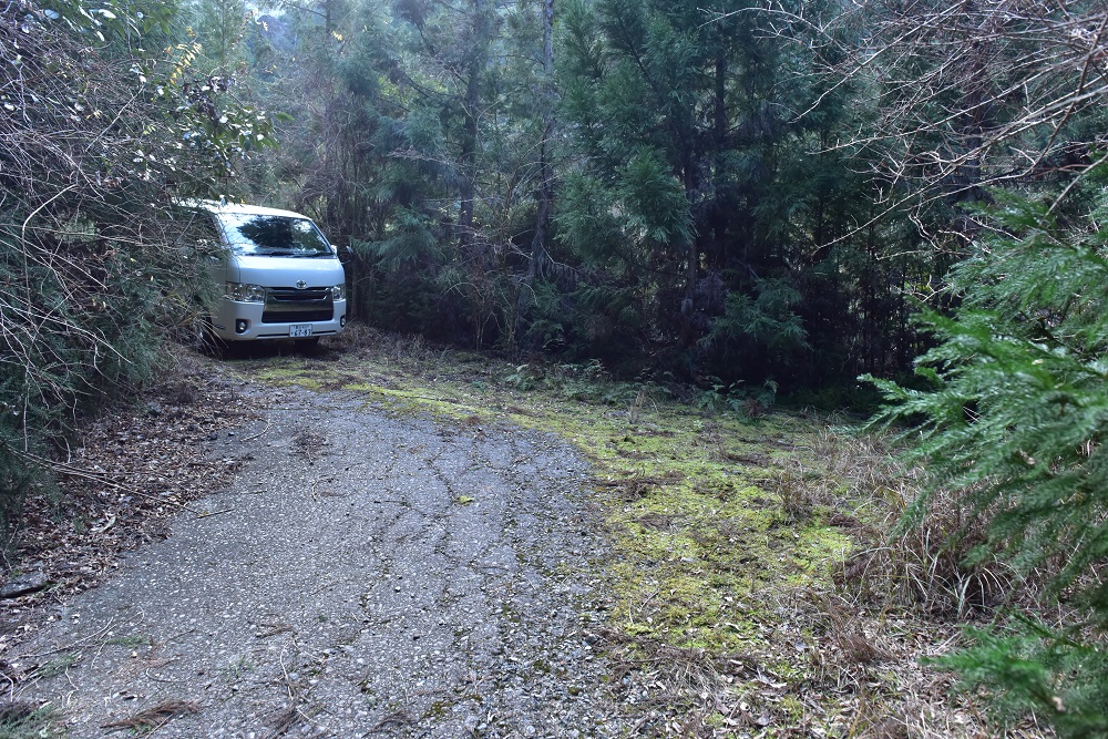 熊野川町東地区の奥の大堰堤の下にUターンし向きを変えて車を停めました。