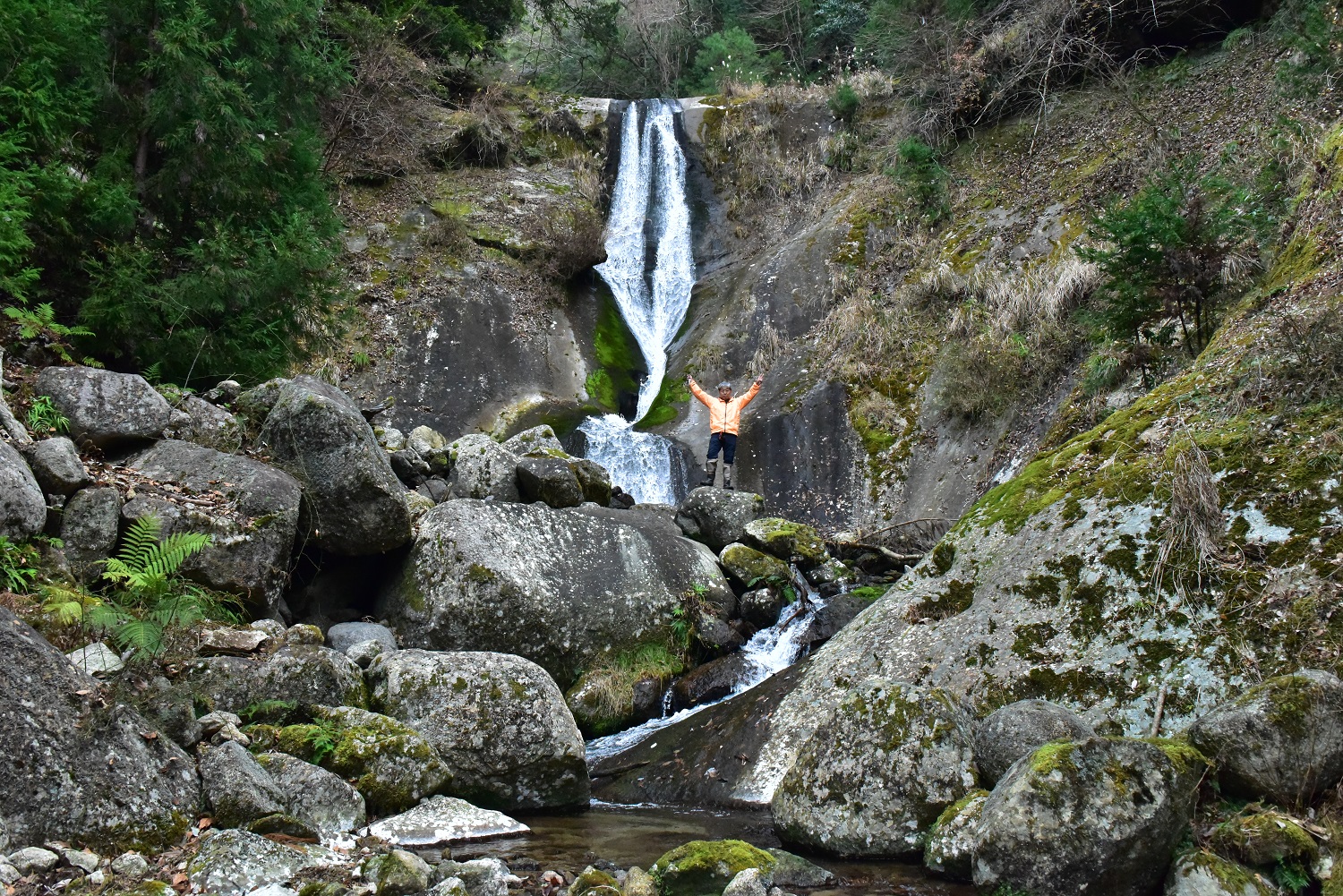 全体的には道はほぼ無いので、ルートを探し探しの遡上でようやく滝が見えました。