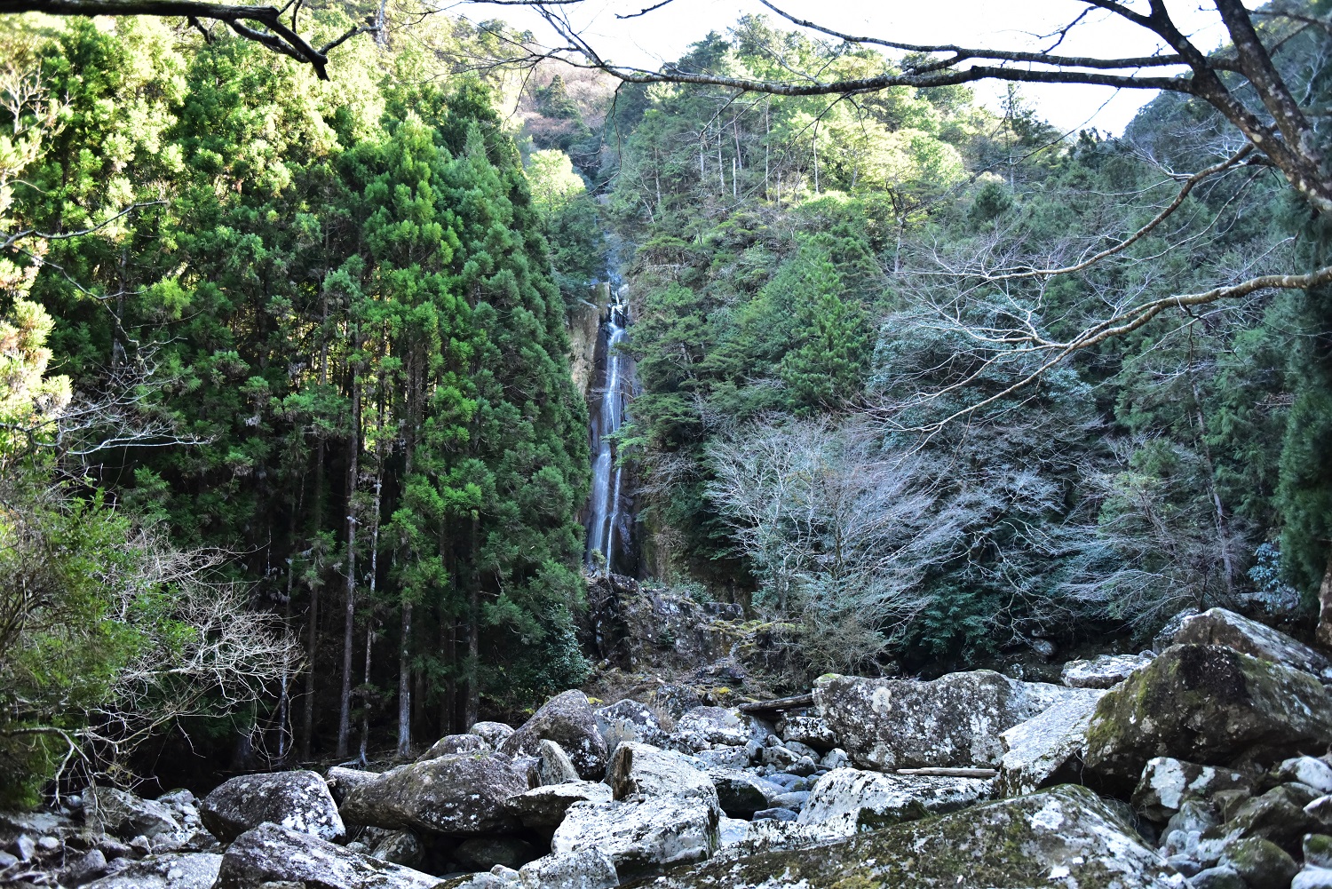 太平洋・熊野灘←熊野川←赤木川(静閑瀞)の上流部流域の新宮市熊野川町瀧本地区に落ちる滝です。