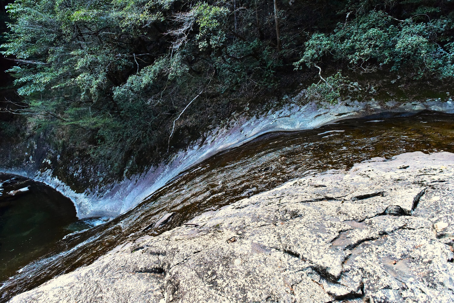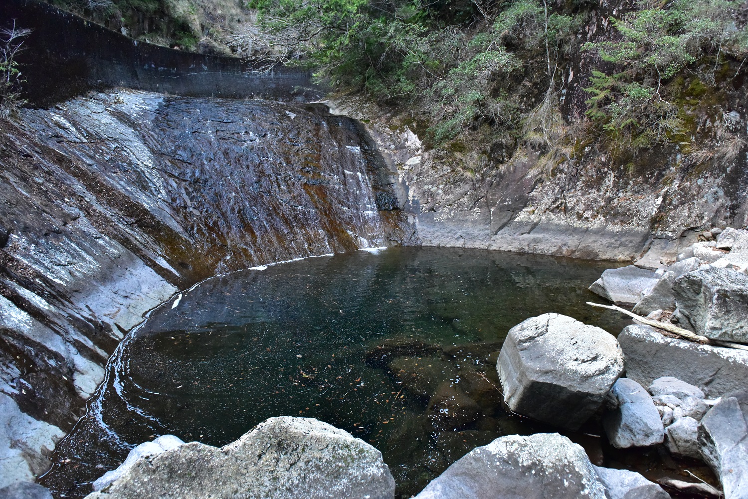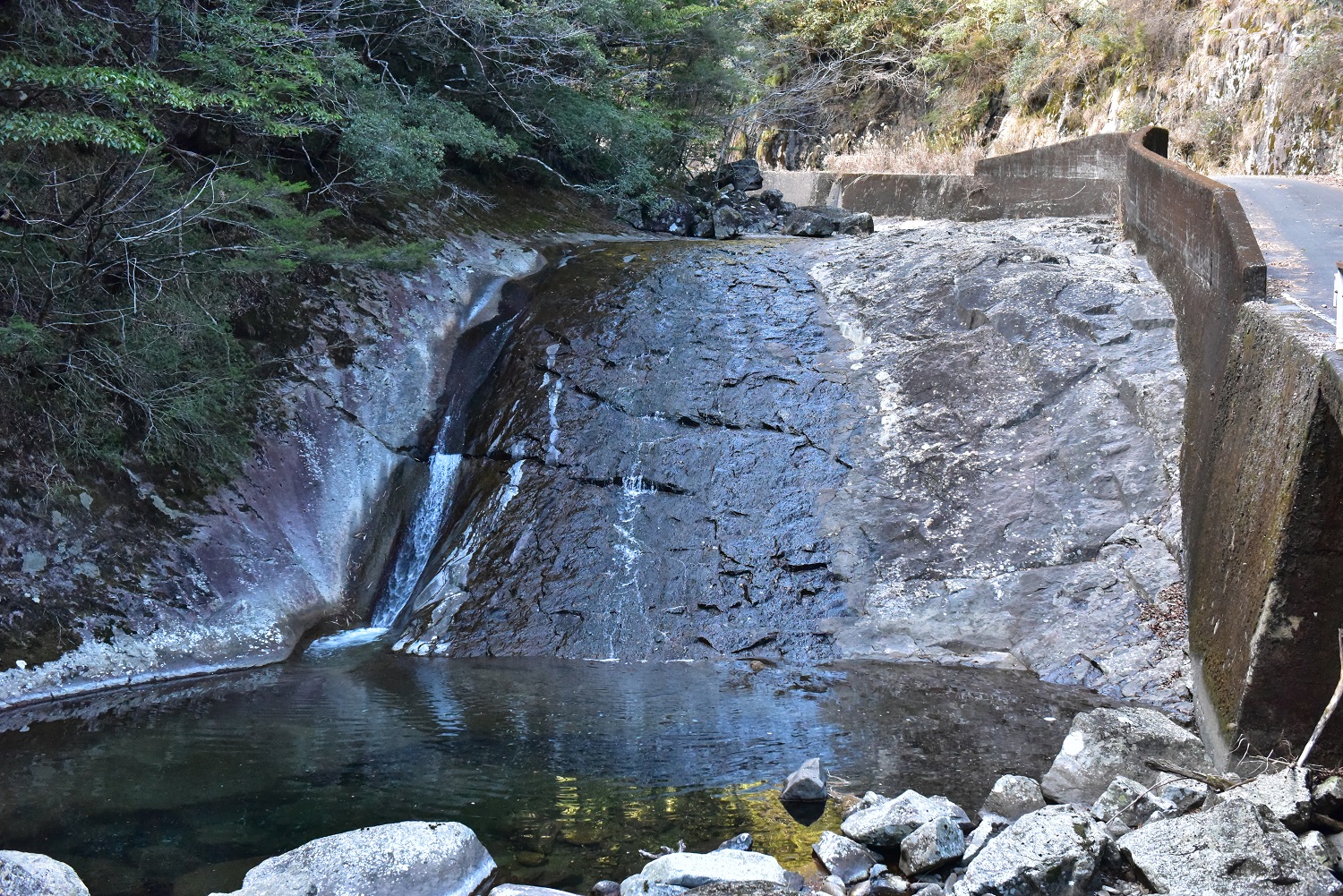 この辺り、川は滑床が続いていて、見てきた2滝は目測8m程度の滑滝でした。