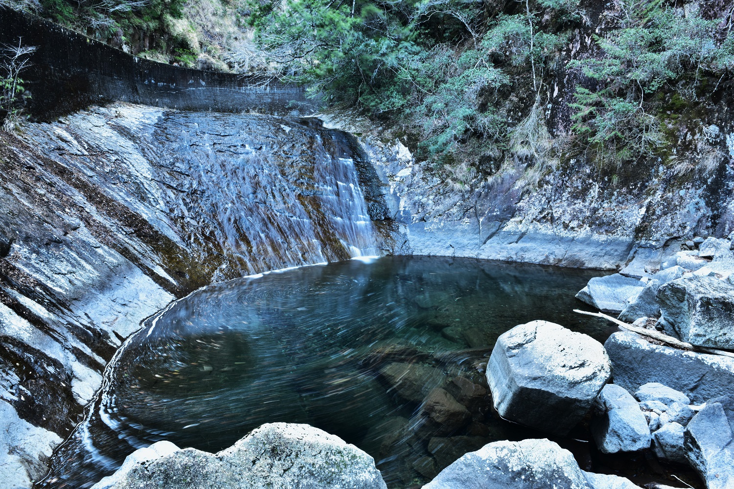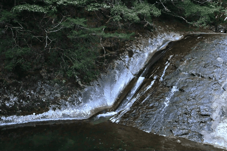 太平洋・熊野灘←新宮川←田長谷(たなごだに)に落ちる滝で、下流から順に鼻白の滝、新四郎の滝、無名の滑滝などがあります。
