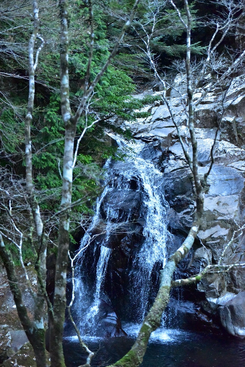 鼻白の滝の上流にある滝で、林道下に落ち難なく下りれました。